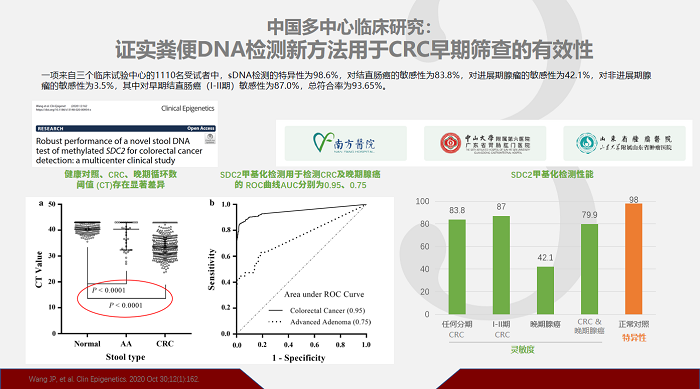 楊迅教授還對(duì)人類(lèi)SDC2基因甲基化檢測(cè)試劑盒(熒光PCR法)的前瞻性篩查研究數(shù)據(jù)及臨床案例的進(jìn)行了解讀,充分證明了該技術(shù)在臨床應(yīng)用的效果。